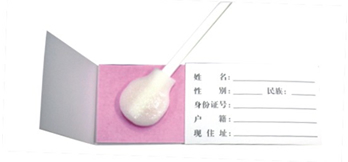 口腔細(xì)胞采集卡是一種以植物纖維為載體用于存儲(chǔ)DNA的新型介質(zhì),專為室溫下對(duì)包括唾液在內(nèi)的各種生物體液、細(xì)胞培養(yǎng)液等樣品進(jìn)行收集、運(yùn)輸和存儲(chǔ)而設(shè)計(jì)。通過(guò)獨(dú)特的配方和生產(chǎn)工藝,當(dāng)含有生物體液的樣本接觸口腔細(xì)胞采集卡后,采集卡顏色從粉紅色變?yōu)榘咨?表示出生物樣本存在區(qū)域,便于后續(xù)打孔及PCR擴(kuò)增。